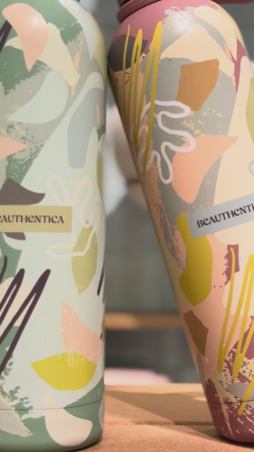 A refined everyday essential designed with Beauthentica’s signature abstract artwork and a soft matte finish. Crafted with double-wall insulation to help maintain drink temperature and made from BPA-free materials for safe, conscious hydration.